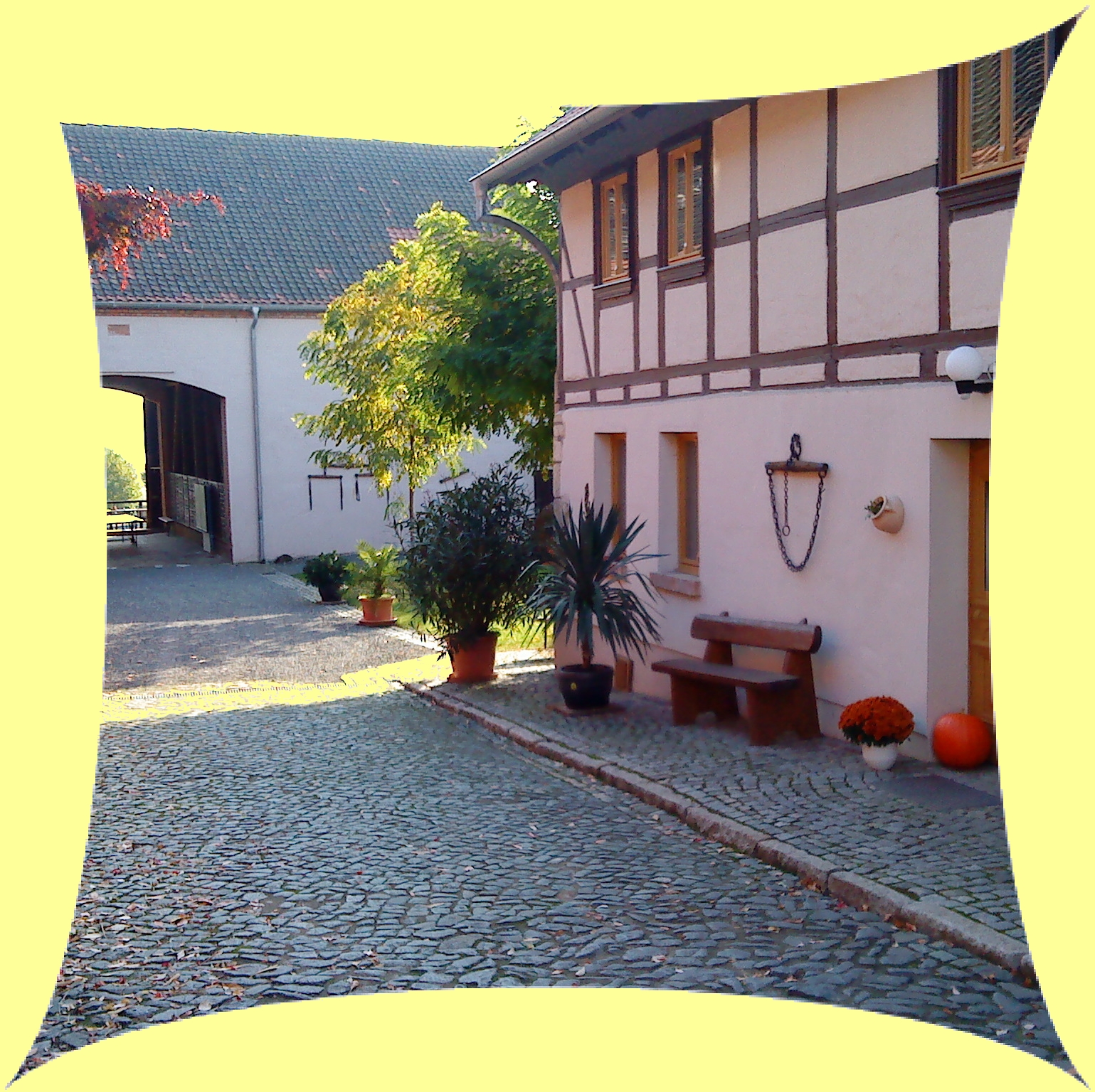 Der Hof mit Blick zur Sonnenterasse |